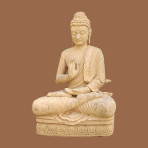 Bring tranquility and positive energy into your home with this exquisite hand-carved Buddha statue. Depicted in the classic Abhaya Mudra, the Lord Buddha sits in a meditative lotus position, offering blessings and protection. Made from beautiful, light-colored stone, its serene expression and detailed craftsmanship make it a perfect centerpiece for your meditation space, living room, or garden.